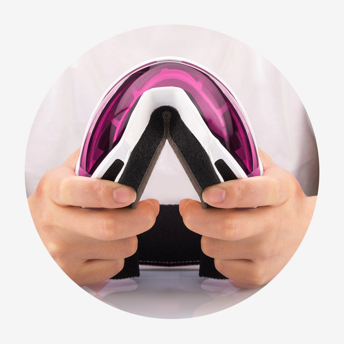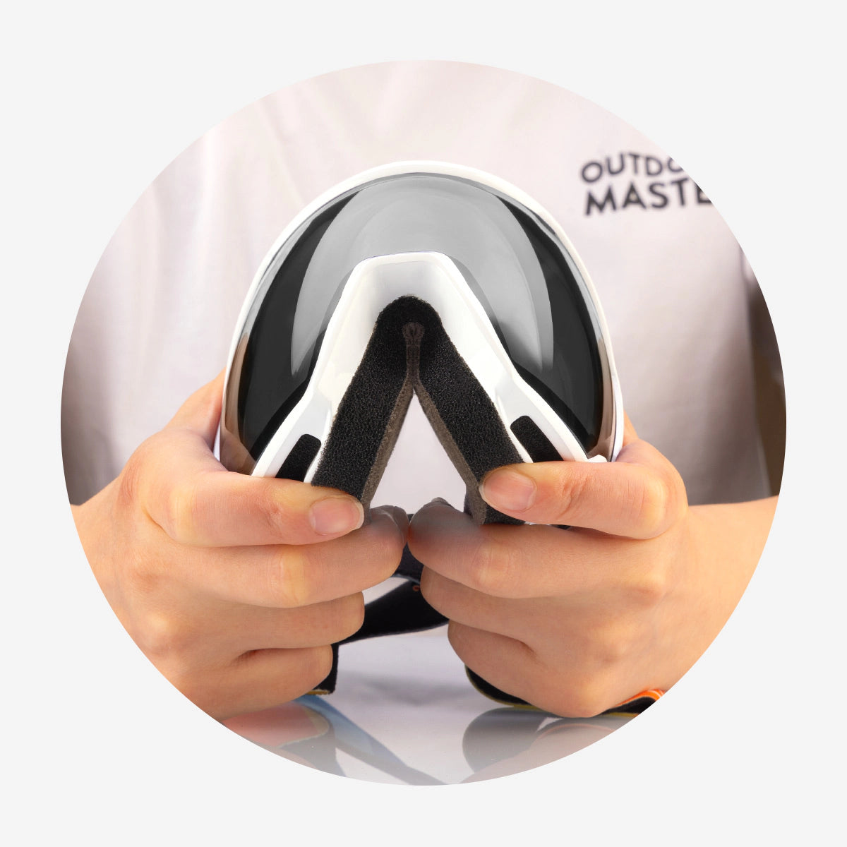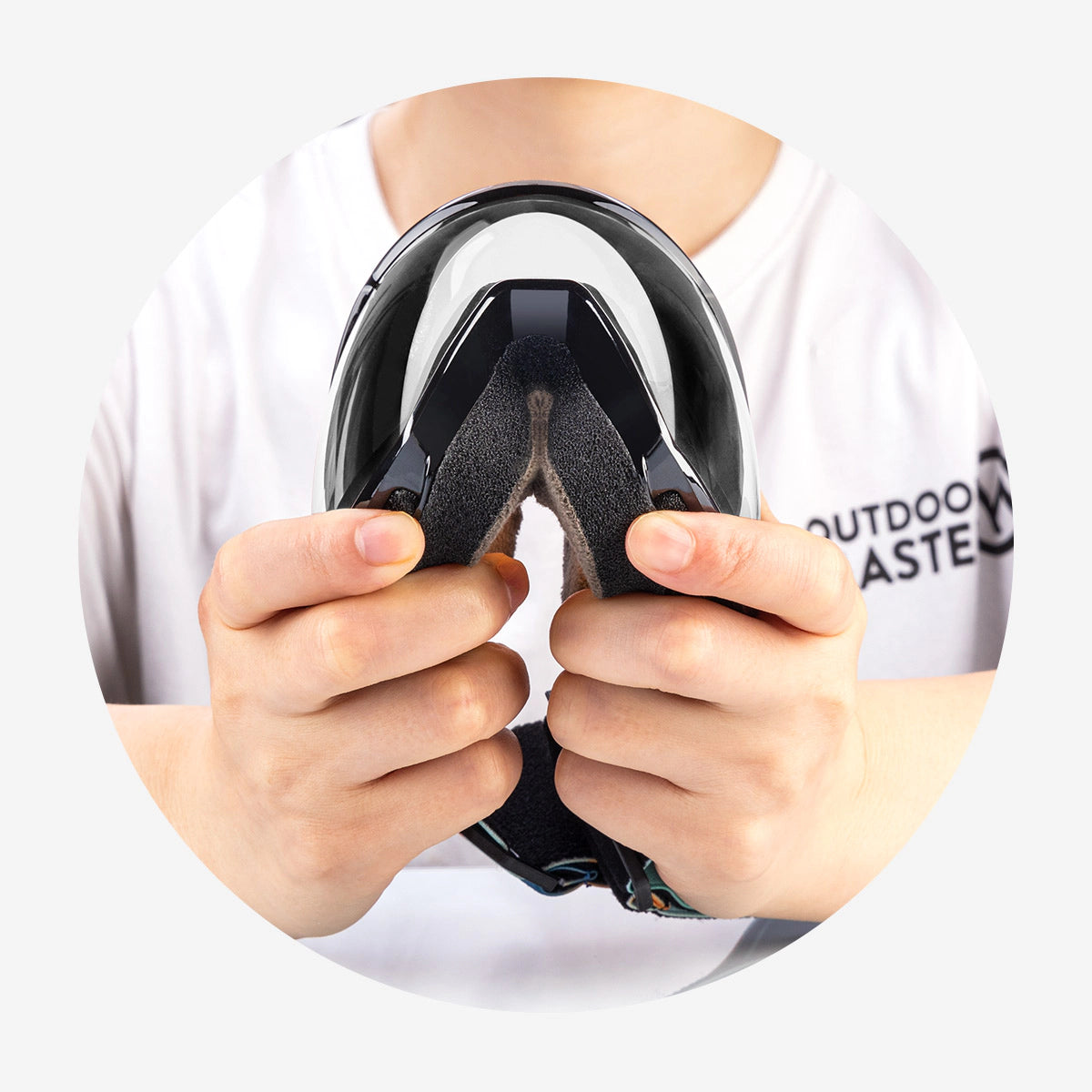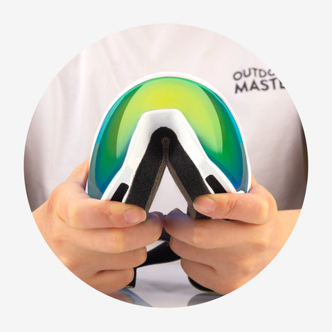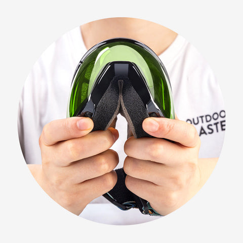 Le Cadre OTG (Over-the-glasses) s’adapte parfaitement à la plupart de lunettes de vue. La Mousse à Triple Couches aide à évacuer l’humidité par absorber la buée formée. Confortable & Respirant.