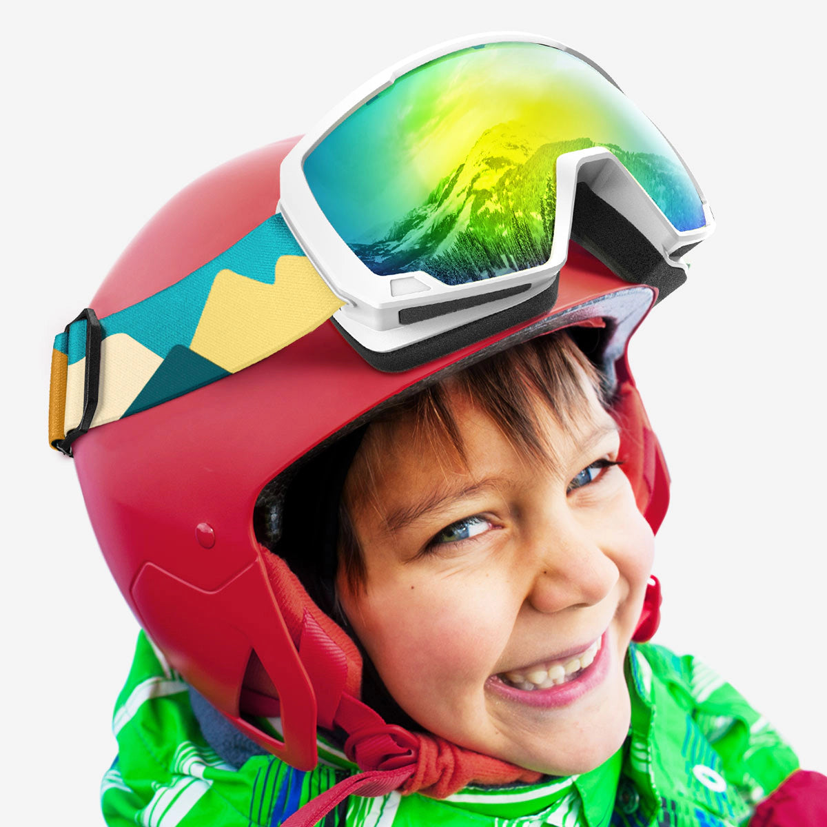 Les Lunettes de Ski d’Enfant est compatible à toutes types de casques. Il s’adapte aux garçons et aux filles de 6 ans et de plus avec différentes options d’écran et de cadre colorés.
